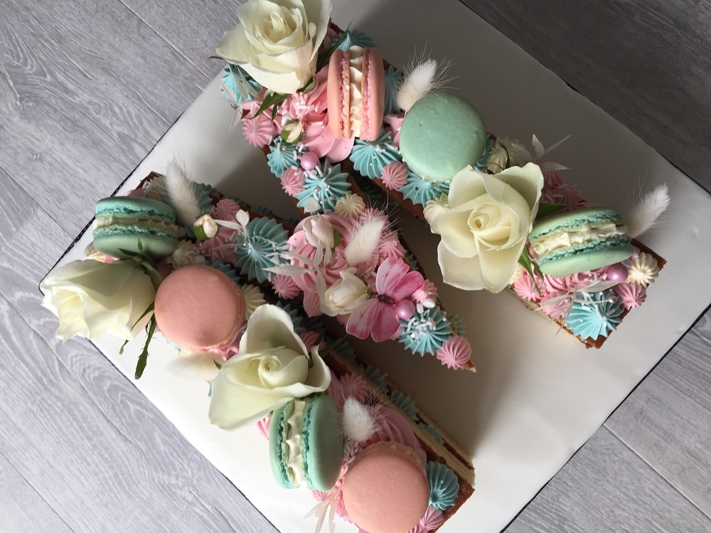 Each number or letter is 10” in length and 3” high and will be presented on 12” cake board and individually boxed for easy transportation.
